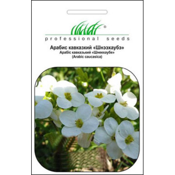 Arabic caucasica. Многолетнее, маленькое, травянистое растение, высотой 20 см. Стебли серебристо-белого цвета, ветвистые. Цветы небольшие, диаметром до 2 см, белоснежного цвета. В период цветения сильно разрастается, образовывая пушистый ковер. Используют для весенних клумб, альпийских горок, бордюров и переднего плана рабаток. Особенно эффектно смотрится рядом с тюльпаном и лакфиолем. Семена высевают в открытый грунт в апреле или под зиму. Цветет на второй год. Отдает предпочтение солнечным местам, но хорошо растет и в полутени.