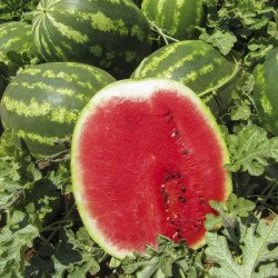 Раннее малиновое угощение, также известное как Crimson Treat, это арбуз сортотипа Crimson Sweet, он является сортом icebox-type, среднего размера, до 5 кг. Это арбуз с полосатой кожурой, с чередующимися светлыми и темно-зелеными полосками, извивающие весь плод. Мякоть ярко-красная, очень сладкая. Ранний сорт. От сева до начала созревания 85 дней.| Тип семян | Сорт |