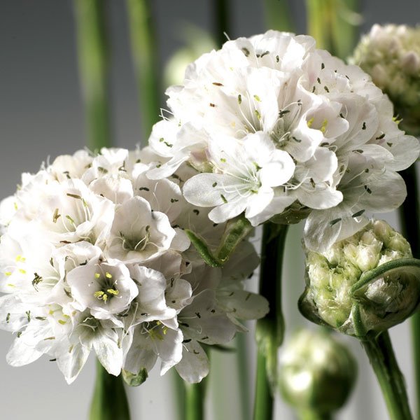 Армерия Армада белая представляет собой одну из наиболее ранних и обильно цветущих серий, отличающуюся однородностью по сравнению с традиционными сортами. Она формирует плотную розетку узких листьев, из которой вырастают прямостоячие цветоносы с шаровидными соцветиями на вершине. Это растение способно зацвести в год посева, не требуя стадии яровизации, однако в этом случае цветение будет не таким обильным. Если выращивать растения этой серии с зимовкой в открытом грунте или в холодных теплицах, на одном экземпляре может появиться до 40 цветоносов. Армерия относится к первоцветам, период цветения которых приходится на май-июнь и длится 30-40 дней. Данная культура отличается устойчивостью к холоду и морозу, что делает её отличным выбором для весенне-летних продаж.