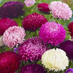 Callistephus chinensis Rose of Shanghai Red. Сортотип "Принцесса". Эффектная серия с крупными махровыми соцветиями. Куст прочный, хорошо разветвленный, высотой 55-65 см. На одном растении формируется 10-13 побегов первого порядка. Соцветия плоско-округлой формы, диаметром 12-14 см, ярких окрасок. На рассаду семена высевают в марте - апреле. Пикировку проводят в фазе 2-3 настоящих листочков по схеме 5x5. В открытый грунт растения высаживают в середине мая. При безрассадном способе семена высевают на постоянное место ранней весной или под зиму. Неприхотлива в уходе, хорошо реагирует на подкормки. Используется для оформления приусадебных участков и высококачественного среза.