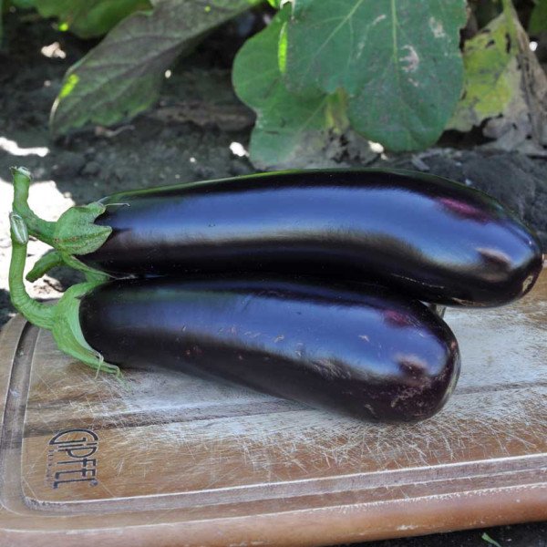 Продолговатой формы, темно-фиолетовые, гладкие, с блестящей поверхностью, однородные по размеру плоды, массой 250-300 г (диаметр - 5,5 см, длина - 22-24 см), имеют нежную, плотную мякоть приятного вкуса. Срезанные плоды в течении продолжительного периода сохраняют свой вкус. Благодаря своим отменным вкусовым качествам гибрид отлично подходит для домашней кулинарии.