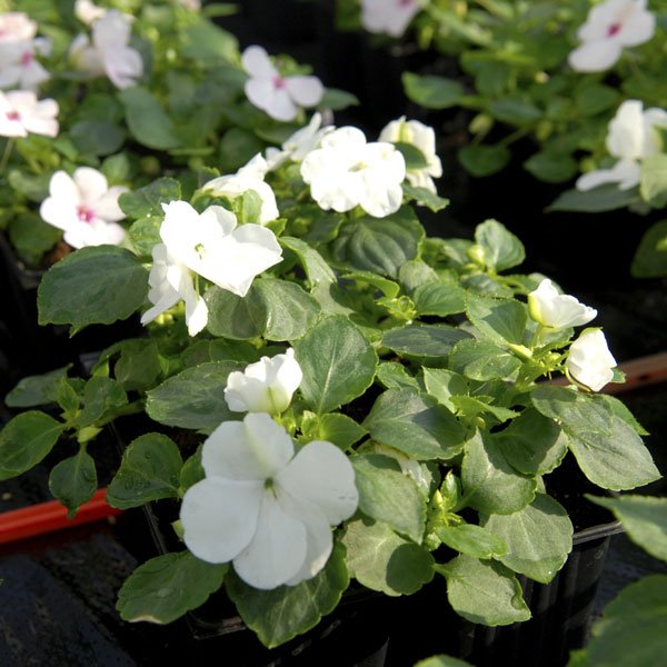 Бальзамин Баланс F1 - однолетняя компактная культура, оптимально подходящая для выращивания в горшках, контейнерах и для создания бордюрных композиций. В условиях горшечной культуры высота растения составляет 15–20 см, а в открытом грунте достигает 20–25 см. Диаметр кустика варьируется от 25 до 30 см. Цветки крупные, диаметром 2–3 см, простые, белого цвета. В открытом грунте цветение продолжается с июня до первых заморозков, а в помещениях — круглый год при температуре не ниже 16 оС.