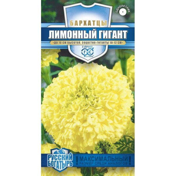 Семена бархатцы Лимонный гигант, фасовка 0,3 г.