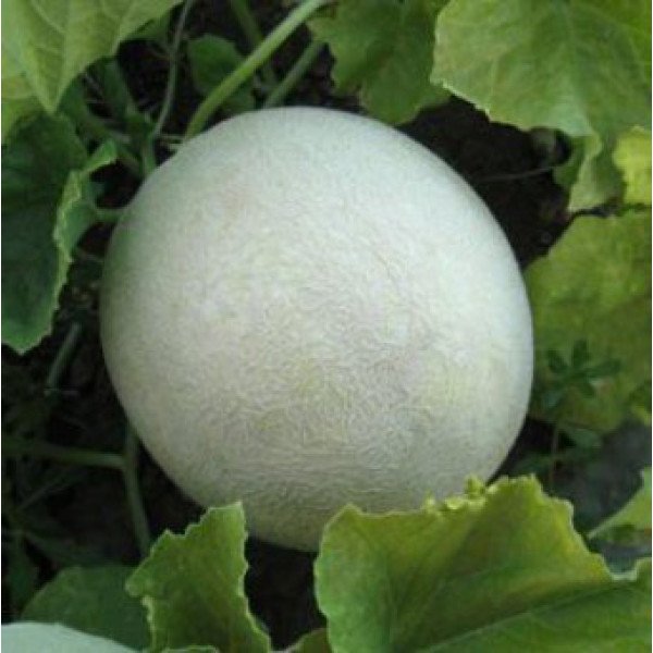 Энергичное растение с хорошо развитыми листьями cозревает через 70-75 дней после высадки рассады. Плоды высоко-округлой формы, кремово-белый цвет со слабо выраженной сеткой. Средний вес: 1,5-2,5 кг. Мякоть зеленовато-белого цвета, сладкая и хрустящая. Содержание сахара: 15-16%. Хорошая завязываемость плодов, устойчивость к жарким условиям и к болезням.