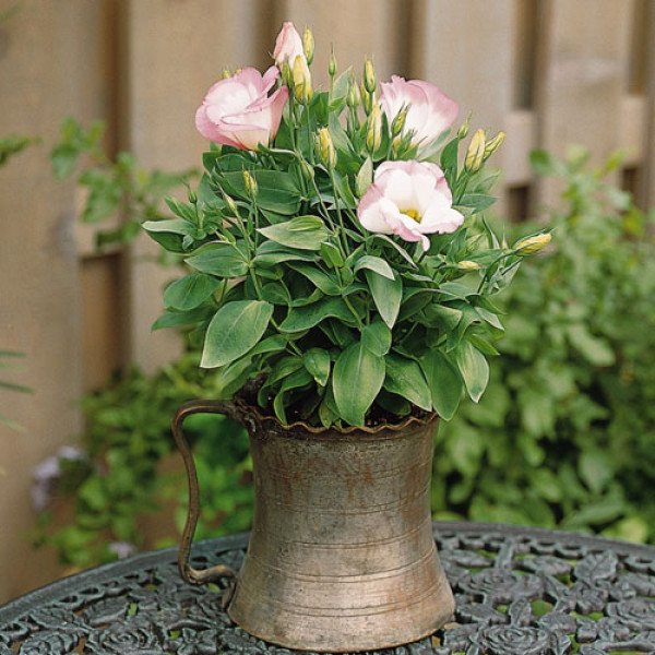 Эустома Сапфир F1 бело-розовая - низкорослая серия, высотой 10-15 см, шириной 10-15 см. Образует хорошо разветвленные, обильно цветущие кустики. Сохраняет компактный вид без применения регуляторов роста. Цветение обильное и продолжительное, на одном растении образуется большое количество бутонов. Солнцелюбивое растение, предпочитает места с окультуренной почвой. Требует регулярных поливов и опрыскивания. Период цветения длится с июля по август. Посев проводят в конце февраля - марта. Семена мелкие, их не присыпают, оставляя на поверхности субстрата. Увлажняют из распылителя и накрывают стеклом. Первые ростки появляются через 10-12 дней, при температуре 21-24 оС. Пикировку проводят в фазе 2-3 настоящих листочков в отдельные горшочки. На постоянное место высаживают, когда минует угроза заморозков. Идеально подходит для выращивания в горшках или контейнерах.