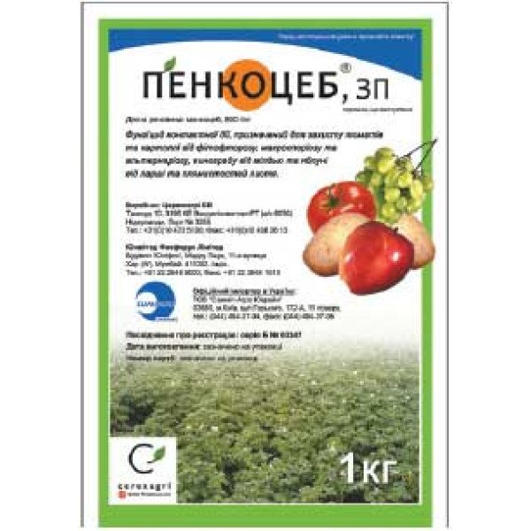 Пенкоцеб - профилактическое контактный фунгицид который предназначен для защиты томатов и картофеля от фитофтороза (Phytophthora infestans), макроспориоза (Macrosporium solani) и альтернариоза (Alternaria solani), винограда от милдью (Plasmopara viticola) и яблони от парши (Venturia enaequalis) и пятнистости листья. ПЕНКОЦЕБ подавляет активность ферментов и нарушает рост клеточной оболочки патогенную. Препарат равномерно распределяется по поверхности растений образуя защитный слой, препятствующий проникновению патогенная в середину листа.