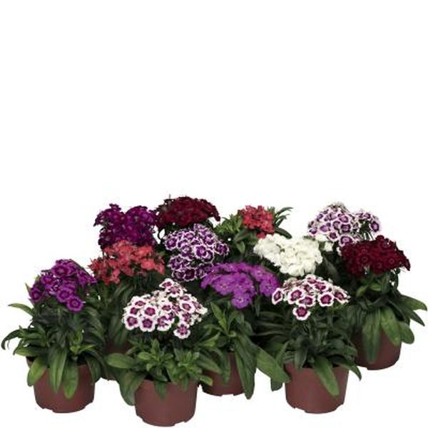 Гвоздика Барбарини F1 смесь - компактный многолетник, который зацветает в год посева. Высота - 20-30 см. Цветки бахромчатые, имеют приятный аромат. Растениям присущи все преимущества гибридов - хорошая сила роста, легкость выращивания, компактность, высокая однородность по габитусу и времени цветения всех расцветок. Зона зимостойкости от -35 оС до -29 оС. Используют для оформления рабаток, низкорослых клумб и декорирования краев газона. Период выращивания после высадки в горшок - 10-12 недель.
