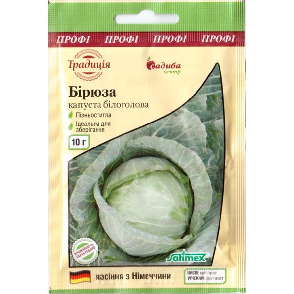 Капуста Бирюза - позднеспелый (от посева до образования головок 180-185 дней), сильнорослый сорт для выращивания в открытом и закрытом грунте. Головки округлые, однородные, весом 2-3 кг, плотной структуры. Капуста на сечении белая, листья хрустящие, с легким восковым налетом, сочные, сладковатые на вкус, без заметной остроты. Сорт не поражается фузариозом, неподвержен растрескиванию, хорошо лежит в хранилищах (до 7 месяцев), не теряя вкусовые качества. Используется в кулинарии, для свежего потребления и переработки. Один из лучших сортов капусты для зимнего хранения и квашения.