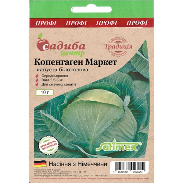 Капуста Копенгаген Маркет - среднеранний (60-75 дней от высадки рассады) сорт с превосходными вкусовыми качествами и привлекательным внешним видом, для выращивания в открытом и закрытом грунте. Головки округлые, компактные, массой 2,5-3,0 кг, в разрезе белоснежные, относительно плотные, дружно созревают. Сорт получил признание за стабильную урожайность, высокую устойчивость к фузариозу и бактериозу, несклонность к растрескиванию. Лучше всего подходит для потребления в свежем виде в зеленых салатах или в кулинарных блюдах, прекрасно шинкуется.