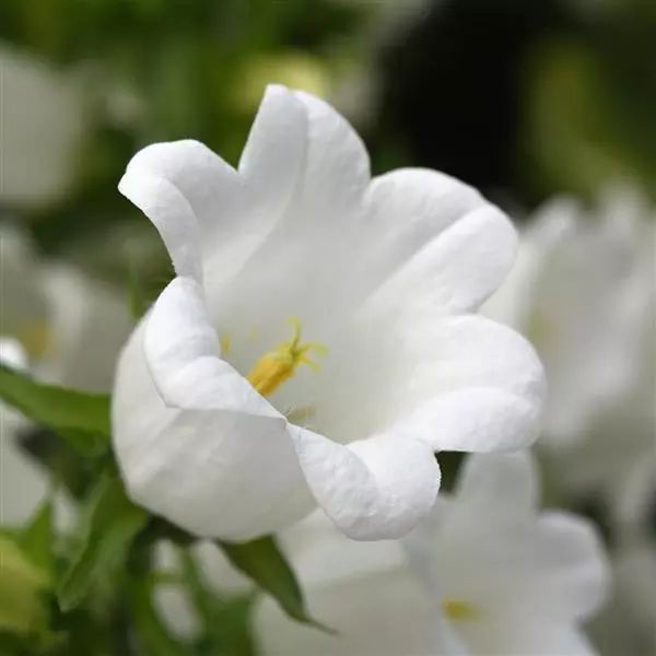 Колокольчик Кампана белый - двухлетнее растение с великолепными крупными цветками. Серия универсальная, выращивается в теплице и открытом грунте. Высота куста 75-85 см, ширина - 13 см, формирует высокие побеги с множеством цветков. Отличается превосходным ростом и однородностью растений. Серия подходит для выращивания в летний и зимний периоды. Цветение обильное и продолжительное. Серия предназначена для коммерческого выращивания на продажу. Цветы идеально подходят для срезки. Сохраняют свою декоративность в воде 10-12 дней.