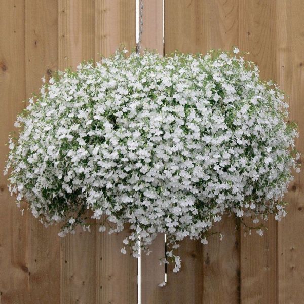 Лобелия Регатта белая является инновационным сортом, который характеризуется значительно ранним началом цветения - примерно на четыре недели раньше по сравнению с традиционными видами. Растение имеет тонкие, сильно разветвленные от основания стебли, которые обильно покрыты листьями. На начальных этапах развития оно демонстрирует вертикальный рост, однако впоследствии его побеги начинают свисать, формируя изящный каскад, густо покрытый мелкими цветками.