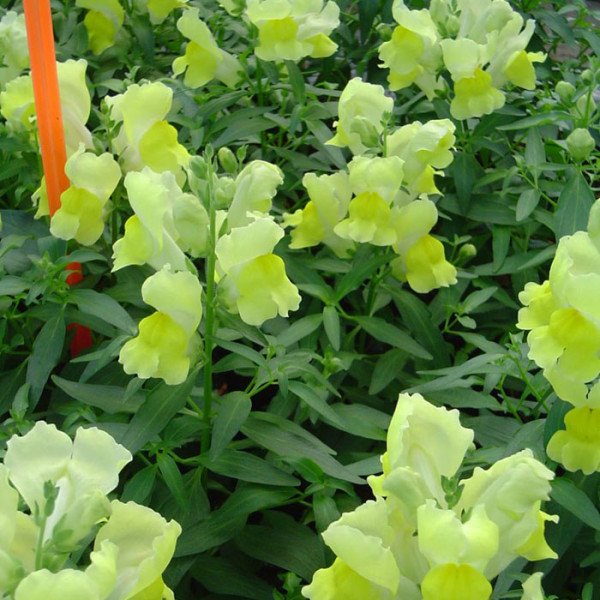 Антиринум Снеппи F1 - карликовый гибрид, достигающий высоты 15-20 см и такого же диаметра. Преимуществом серии является очень богатая цветовая гамма. Очаровательные мелкие цветки, насыщенного желтого цвета, собраны в соцветия, имеющие форму кисти, высотой 8-10 см. Цветение наступает в очень ранние сроки и продолжается с июня до заморозков. Растение будет идеально смотреться в горшках, декоративных вазах, подвесных корзинах, контейнерах. Используется для украшения балконов и клумб. Размещают на хорошо дренированных почвах. Культура неприхотлива, светолюбива, устойчива к ранним осенним заморозкам. Семена высевают в середине марта на рассаду под пленку или стекло в горшки, диаметром 10,5-15 см. Закаленную рассаду высаживают во второй декаде мая, расстояние между растениями от 15 до 50 см. Период выращивания: осенью - 12-14 недель, весной - 16-18 недель. Культура очень отзывчива на поливы и подкормки минеральными удобрениями, которые проводят 2-3 раза до цветения. При чрезмерной влажности болеет и погибает, особенно в возрасте рассады. Для того чтобы продлить период декоративности, необходимо регулярно удалять отцветшие соцветия. Этот прием стимулирует ветвление кустов, вследствие чего усиливается цветение. Растения, пересаженные осенью в горшки и перенесенные в комнату, долго сохраняют декоративность.