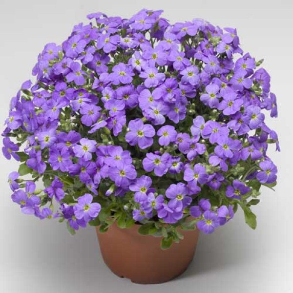 Обриета Одри F1 голубая - это первая гибридная разновидность обриеты, устанавливающая новый стандарт однородности и компактности. Она принадлежит к числу самых раннецветущих многолетних растений. Характеризуется длительным периодом цветения, высокой декоративной ценностью в садовых композициях и отличной зимостойкостью. Данный гибрид можно успешно выращивать как в открытом грунте, так и в холодных пленочных теплицах. Высота взрослого растения составляет 10-15 см. Период выращивания после пересадки в горшки длится от 23 до 27 недель.