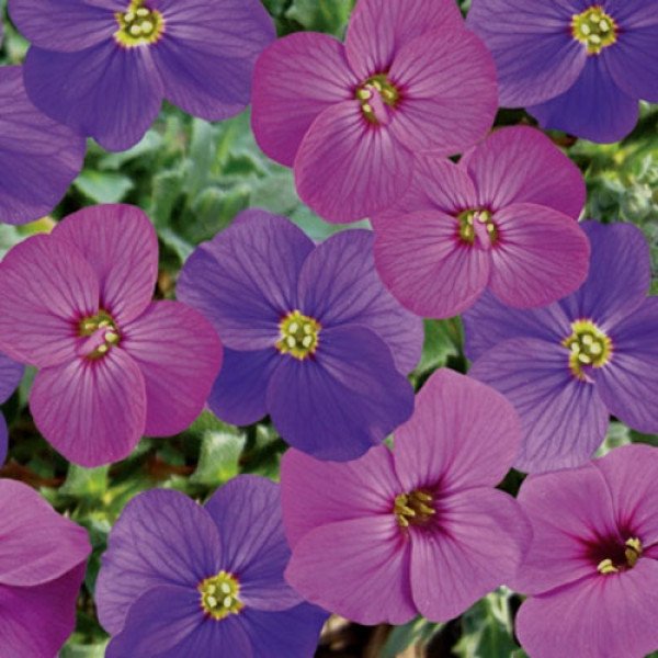 Обриета Одри F1 смесь - это первая гибридная разновидность обриеты, устанавливающая новый стандарт однородности и компактности. Она относится к числу самых раннецветущих многолетних растений. Характеризуется длительным периодом цветения, высокой декоративной ценностью в садовых композициях и отличной зимостойкостью. Данный гибрид можно успешно выращивать как в открытом грунте, так и в холодных пленочных теплицах. Высота взрослого растения составляет 10-15 см. Период выращивания после пересадки в горшки длится от 23 до 27 недель.
