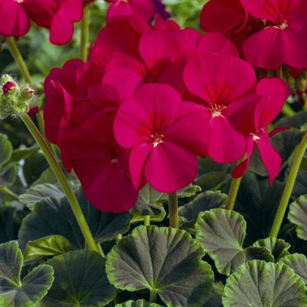 Пеларгония БуллзАй F1 черри - декоративное растение, отличающееся темной, насыщенно-шоколадной окраской листьев. Благодаря глубокому цвету листовой пластинки создается выразительный контраст с яркими соцветиями. Средняя высота культуры составляет 30-35 см. Оптимальным вариантом для выращивания являются горшки диаметром 10,5-13 см. Период вегетации после пересадки в горшок длится 10-12 недель.