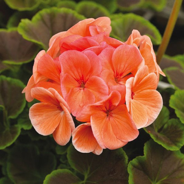 Пеларгония БуллзАй F1 лососевая - декоративное растение, отличающееся темной, насыщенно-шоколадной окраской листьев. Благодаря глубокому цвету листовой пластинки создается выразительный контраст с яркими соцветиями. Средняя высота культуры составляет 30-35 см. Оптимальным вариантом для выращивания являются горшки диаметром 10,5-13 см. Период вегетации после пересадки в горшок длится 10-12 недель.