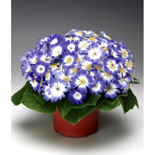 Рericallis Venezia F1 delf blur with ring - это гибрид от семенной компании Syngenta Seeds (Голландия). Отличается легкостью выращивания и высокой однородностью продукции. Горшочная циненария Венеция F1 имеет некрупные цветки диаметром 2,5-3,5 сантиметра. Цветение очень красивое, буквально шапка изумительных цветочков возвышается над горшком. Высота растения в среднем 20 - 25 сантиметра. Основные преимущества циненарии Венеция F1 - короткое время выращивания. Не чувствительна к длине дня. Цветочные почки закладываются при температуре 16*С. Время выращивания от посева до цветения 14-16 недель. Время от посева до пикировки 6-8 недель. Диаметр контейнера 10-14 см. Цветение стимулируется в условиях короткого дня.