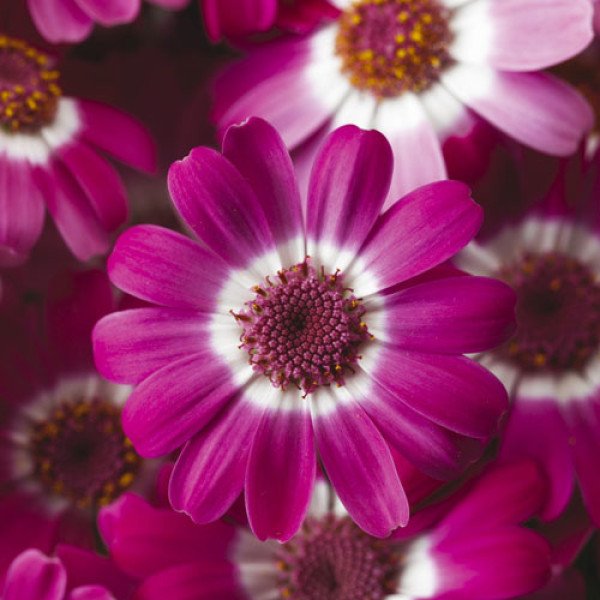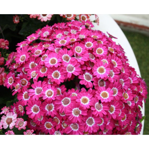 Рericallis Venezia F1 pink rim - это гибрид от семенной компании Syngenta Seeds (Голландия). Отличается легкостью выращивания и высокой однородностью продукции. Горшочная циненария Венеция F1 имеет некрупные цветки диаметром 2,5-3,5 сантиметра. Цветение очень красивое, буквально шапка изумительных цветочков возвышается над горшком. Высота растения в среднем 20 - 25 сантиметра. Основные преимущества циненарии Венеция F1 - короткое время выращивания. Не чувствительна к длине дня. Цветочные почки закладываются при температуре 16*С. Время выращивания от посева до цветения 14-16 недель. Время от посева до пикировки 6-8 недель. Диаметр контейнера 10-14 см. Цветение стимулируется в условиях короткого дня.