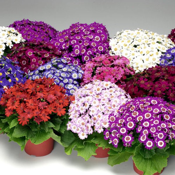 Рericallis Venezia F1 Mix - это гибрид от семенной компании Syngenta Seeds (Голландия). Отличается легкостью выращивания и высокой однородностью продукции. Горшочная циненария Венеция F1 имеет некрупные цветки диаметром 2,5-3,5 сантиметра. Цветение очень красивое, буквально шапка изумительных цветочков возвышается над горшком. Высота растения в среднем 20 - 25 сантиметра. Основные преимущества циненарии Венеция F1 - короткое время выращивания. Не чувствительна к длине дня. Цветочные почки закладываются при температуре 16*С. Время выращивания от посева до цветения 14-16 недель. Время от посева до пикировки 6-8 недель. Диаметр контейнера 10-14 см. Цветение стимулируется в условиях короткого дня.
