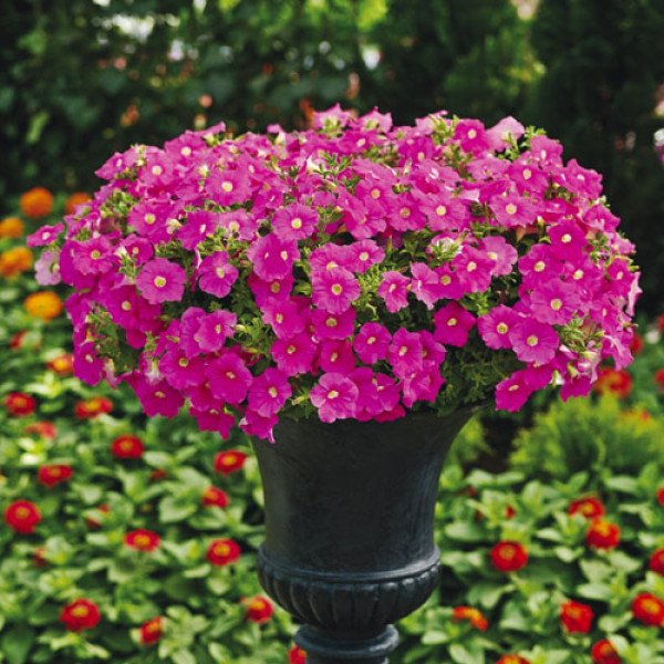 Одна из самых эффектных каскадных петуний. При высоте 25-35 см способна разрастаться в ширину до 60-70 см, образуя плотный обильно цветущий кустик. Цветы разнообразных ярких расцветок, достигают 7-8 см в диаметре. Гибрид зацветает на 2 недели раньше аналогичных групп, отмечается замечательной однородностью по срокам цветения в середине серии, прекрасно разрастается в саду и прекрасно смотрится в больших контейнерах. Выращивают рассадным способом. Посев проводят в конце февраля - марте. Семена петунии равномерно рассыпают по поверхности хорошо увлажненной земли, сбрызгивают водой из распылителя и накрывают стеклом или прозрачной пленкой. Всходы появляются через 7-12 дней. Пикировку проводят в фазе двух настоящих листьев. Рассаду высаживают на постоянное место, когда минует угроза заморозков. Идеальна для вертикального озеленения и оформления клумб.