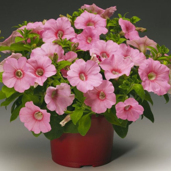Одна из самых эффектных каскадных петуний. При высоте 25-35 см способна разрастаться в ширину до 60-70 см, образуя плотный обильно цветущий кустик. Цветы разнообразных ярких расцветок, достигают 7-8 см в диаметре. Гибрид зацветает на 2 недели раньше аналогичных групп, отмечается замечательной однородностью по срокам цветения в середине серии, прекрасно разрастается в саду и прекрасно смотрится в больших контейнерах. Выращивают рассадным способом. Посев проводят в конце февраля - марте. Семена петунии равномерно рассыпают по поверхности хорошо увлажненной земли, сбрызгивают водой из распылителя и накрывают стеклом или прозрачной пленкой. Всходы появляются через 7-12 дней. Пикировку проводят в фазе двух настоящих листьев. Рассаду высаживают на постоянное место, когда минует угроза заморозков. Идеальна для вертикального озеленения и оформления клумб.