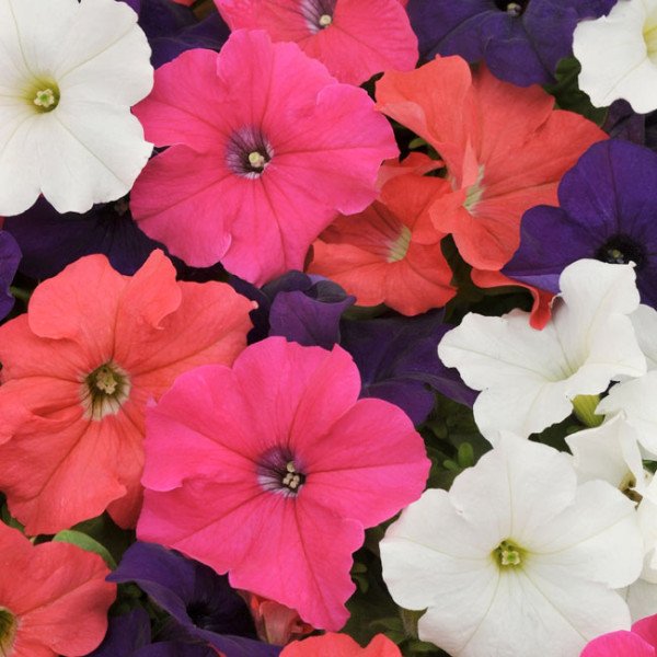 Petunia grandiflora Tango F1 mix Карликовый, долго цветущий гибрид петунии с большими цветами серии «Танго F1», который не требует использования химических регуляторов роста. Имеет компактную форму,одновременный период цветения и поэтому есть одной из лучших декоративных культур. Гибрид стойкий к смене погодных условий. Семена дражированые, что делает посадку удобной. уникальная приспособляемость петунии к различным условиям возделывания, почвам и климату, несложность агротехники, длительность и яркость цветения сделали ее одной из популярных культур цветоводов и озеленителей. В настоящее время петуния занимает одно из первых мест среди летников, и с появлением новых групп и гибридов интерес к ней все увеличивается. Высевают в теплицы с февраля по апрель в ящики из влажным грунтом. Сейте редко, слегка прижимая семена к земле, но не присыпайте их землей. Накройте посевы стеклом или полиэтиленовой пленкой. Температурный режим от +10 до +15°С . Регулярно поливайте посевы. Пикировку сеянцев проводят в кассеты 3х3 см. Рассаду на постоянное место высаживают в мае – июне месяце. Срок рассады перед высадкой в открытый грунт должен составлять 3 месяца. Грунт должен быть легким с высоким содержанием питательных веществ. Регулярно поливайте растения. На протяжении цветения, с июня до заморозков, регулярно удаляйте цветы, что отцвели, для того чтобы продлить цветение. Подкармливают растения комплексными минеральными удобрениями, в состав которых входят микроэлементы.