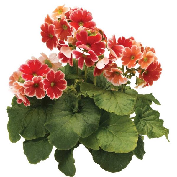 Примула Либре F1 скарлет пикоти характеризуется компактной кустовой формой, высота растения составляет 20-25 см, ширина - 15-20 см. Представители этой серии не содержат примина - вещества, которое может вызвать раздражение кожи при контакте с листьями, что делает растение безопасным для использования в декоративном озеленении. Сорт отличается высокой однородностью по морфологическим признакам и синхронностью начала цветения. Цветки имеют диаметр 4-6 см, собраны в зонтиковидные соцветия на удлиненных цветоносах и представлены в широкой палитре оттенков. Растение неприхотливо к условиям выращивания, при этом демонстрирует высокие декоративные качества. Период выращивания после высаживания в горшки составляет 10-12 недель.