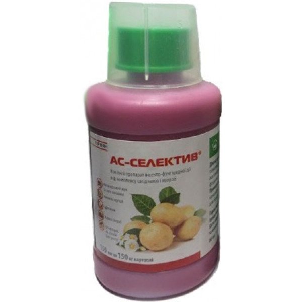 Применение протравителя Ас Селектив не зависит от температуры воздуха .После высадки клубней или рассады одно из действующих веществ с поверхности клубней постепенно переходит в грунтовую воду , а оттуда через корневую систему и в ботву растения. Часть препарата остается в почве , где уничтожает почвенных вредителей, а оставшаяся часть препарата движется в растении только снизу вверх и не переходит в молодые клубни.Защитный период против колорадского жука - до конца вегетации. Благодаря высокой растворимости в воде и клеточном соке протравитель Ас Селектив 150мл обеспечивает стабильную защиту даже в засушливых условиях.