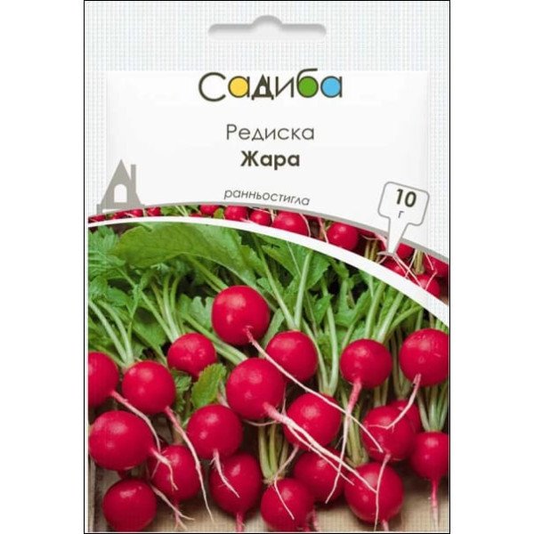 Жара - известный раннеспелый сорт. Формирует широкую листовую розетку и красивые темно-малиновые корнеплоды с бело-розовым, плотной мякотью, который отмечается сладким вкусом с пикантной остринкой. Высевают рано весной в несколько сроков (через 10-12 дней) на глубину 1-2 см во влажную почву. В пищу можно употреблять как корнеплоды, так и листья.| Тип семян | Сорт |