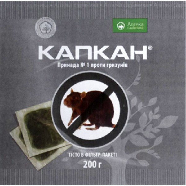 Родентицид Капкан − это готовая тестообразная приманка в фильтр-пакете для уничтожения вредных грызунов в жилищных, промышленных и нежилищных помещениях, на приусадебных участках и сельскохозяйственных угодьях.