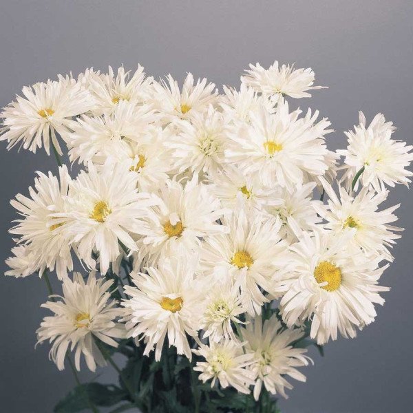 Многолетнее растение высотой 60-70 см. Соцветия-корзинки, 100% махровые, белого окраса, диаметром 7-10 см. Растение характеризуется интенсивным ростом, ранним и длительным цветением, лепестками оригинальной формы. Зимостойкая, свето -, влаголюбивая культура, предпочитает плодородные почвы. При рассадном способе выращивания семена высевают в начале апреля в теплице или в июле-сентябре в открытый грунт. При температуре 15-18 оС всходы появляются через 18-20 дней. В фазе двух настоящих листьев сеянцы пикируют. В открытый грунт рассаду высаживают в мае-июне на расстоянии 40-50 см. Используется для оформления рабаток, клумб, бордюров, для среза.