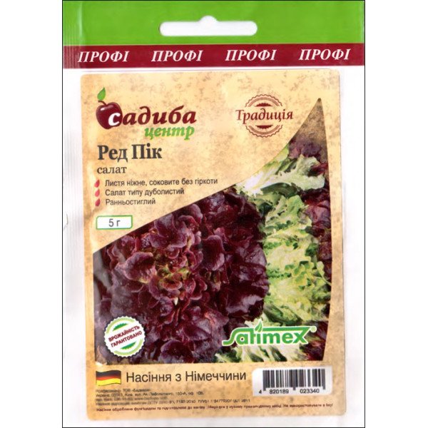 Ред Пик - деликатесный урожайный сорт листового салата типа дубовый лист. Выращивают в открытом и закрытом грунте с ранней весны и до позднего лета. Листья темно-красное, нежное, сочное, без горечи. Сорт устойчив к болезням и стрелкованию. Благодаря своему удачному ненавязчивом вкуса и декоративный вид, станет прекрасным дополнением ваших любимых блюд.| Тип семян | Сорт |