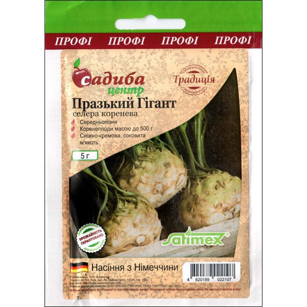 Пражский Гигант - известный урожайный сорт корневого сельдерея. Корнеплоды округлые, массой до 500 г, с нежно-кремовой, сочной и ароматной мякотью. Выращивают рассадным способом: 60-70-дневную рассаду высаживают в конце апреля - в мае. Этот чудо-овощ находит широкое применение в кулинарии: его потребляют в свежем виде, как основное блюдо и используют в качестве приправы.| Тип семян | Сорт |