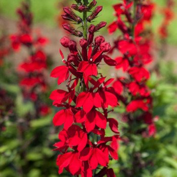 Семена лобелии многолетней Фан скарлет (scarlet), фасовка 100 семян (драже) Лобелия Фан скарлет является многолетним декоративным растением, которое достигает в высоту 50-60 см. Характеризуется крупными цветками диаметром около 3 см, которые имеют двугубую форму и размещаются на коротких цветоножках..