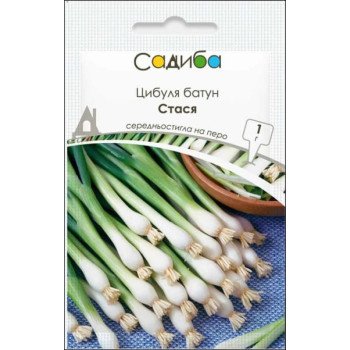 Семена лука-батун Стася, фасовка 1 г Среднеспелый сорт многолетнего лука батун сорт Стася. От отрастания листьев до технической спелости зеленого пера - 30-40 дней. Общая урожайность зеленой массы - 3,5-4,5 кг/м2. Листья длинные (56-68 см), прямые, зеленого цвета с восковым налетом. Сорт устойчив к ..
