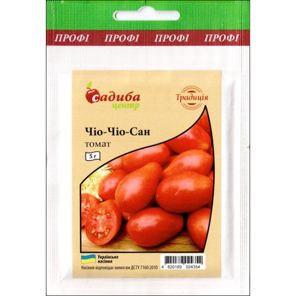 Чио-Чио-Сан - среднеспелый полудетерминантный (1,5 м) очень урожайный сорт, на одной кисти формирует до 50 плодов! Плоды розовые сливки, массой 30-50 г. Семена высевают в первой половине февраля. После того, как образуется второй настоящий листок - пикируют, заглубляя до семядольных листочков. В фазе 4-х настоящих листочков рассаду необходимо второй раз пикировать. Высаживать в открытый грунт только после того, как минует опасность заморозков. Высадку на постоянное место лучше проводить в пасмурную, влажную погоду. Отличный для высококачественного консервирования! Расчетная норма семян для получения рассады на 10 м2: 0,1-0,2 г. Глубина посева: 1-1,5 см. Количество растений на 10 м2: 25-50 шт.