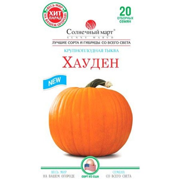 Крупноплодная тыква Хауден один из самых популярных сортов тыквы в США. Созревание занимает 105-116 дней. Плоды характеризуются толстой оранжевой мякотью, плотной оранжевой корой, большими и длинными плетьми и весом 9-11 кг. Мякоть используют на пироги и супы. Очень хорошо хранится до 12 месяцев. Отлично подходит для вырезания хэллоуинских «Джеков».