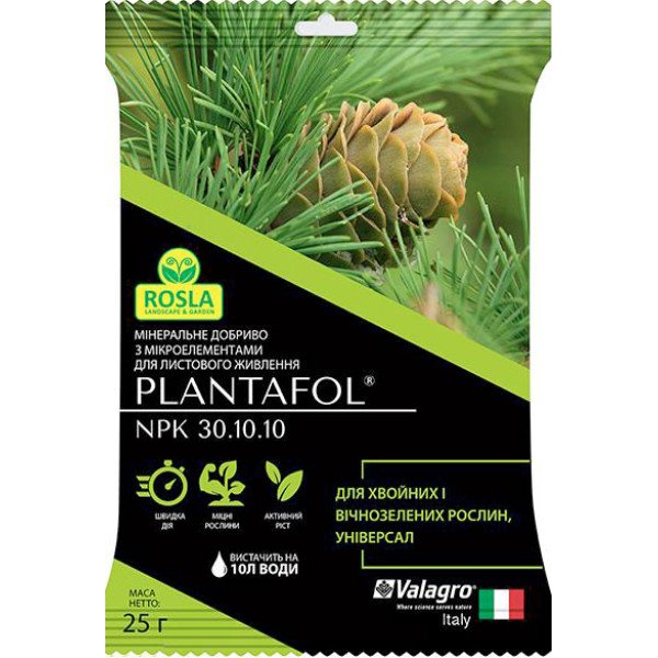 Удобрение ПЛАНТАФОЛ для хвойных и вечнозеленых растений универсал /25 г/ *Valagro*
