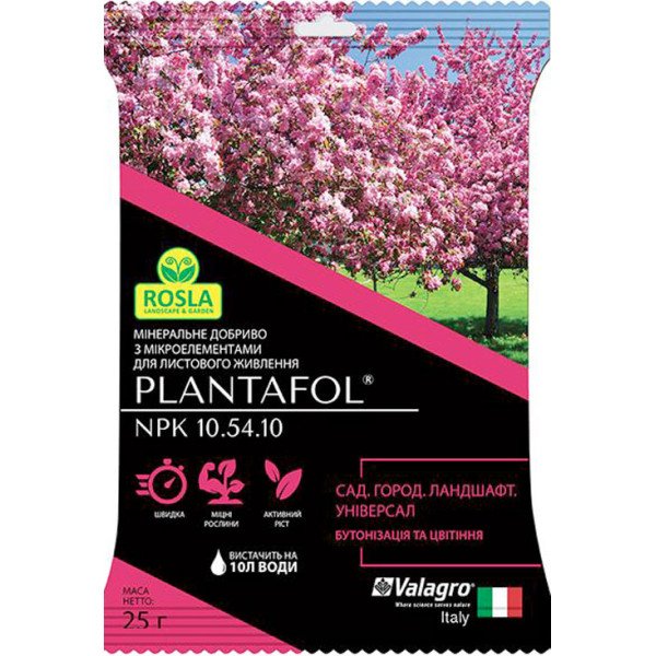 Удобрение ПЛАНТАФОЛ для сада, огорода, ландшафта. Бутонизация и цветение /25 г/ *Valagro*