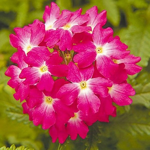 Вербена Обсешн F1 кораловая с глазком - очень однородная, ранняя и обильно цветущая серия, которая отличается высокой толерантностью к мучнистой росе. Куст компактный, высотой 15-20 см, шириной 25-30 см, прекрасно разветвленный, устойчив к вытягиванию. Серию можно выращивать в условиях высокой плотности культуры. Цветы большие, гвоздикообразные, с приятным ароматом, особенно вечером. Обильное цветение многочисленных боковых побегов удлиняет период декоративности. Время выращивания после посадки в горшки - 8-10 недель. Светолюбивое, холодостойкое, достаточно засухоустойчивое растение, к почвам нетребовательное. Идеально подходит для продажи рассады. Используют как горшечную культуру, в подвесных кашпо и в цветочном оформлении открытого грунта. Хорошо растет в условиях оранжерей и зимних садов.