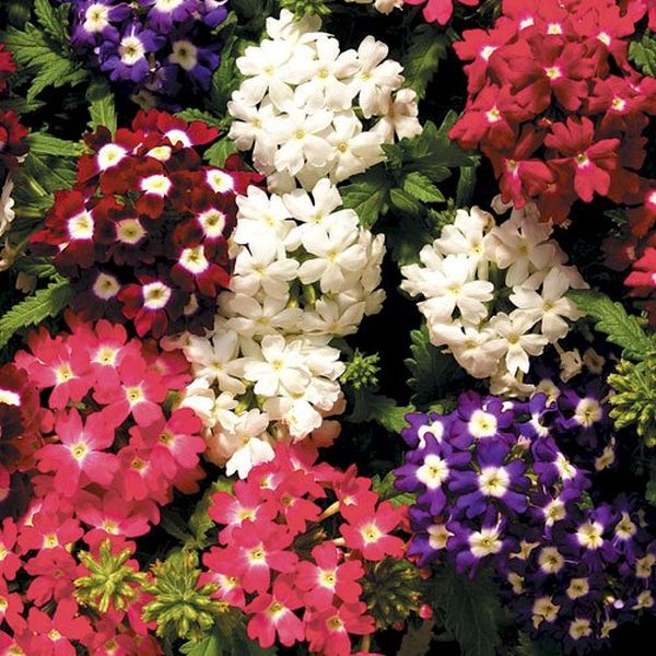 Вербена Обсешн F1 смесь с глазком - очень однородная, ранняя и обильно цветущая серия, которая отличается высокой толерантностью к мучнистой росе. Куст компактный, высотой 15-20 см, шириной 25-30 см, прекрасно разветвленный, устойчив к вытягиванию. Серию можно выращивать в условиях высокой плотности культуры. Цветы большие, гвоздикообразные, с приятным ароматом, особенно вечером. Обильное цветение многочисленных боковых побегов удлиняет период декоративности. Время выращивания после посадки в горшки - 8-10 недель. Светолюбивое, холодостойкое, достаточно засухоустойчивое растение, к почвам нетребовательное. Идеально подходит для продажи рассады. Используют как горшечную культуру, в подвесных кашпо и в цветочном оформлении открытого грунта. Хорошо растет в условиях оранжерей и зимних садов.