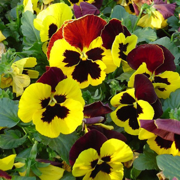 Неприхотливое популярное растение из семейства Фиалковые, известное как Анютины глазки. Цветет обильно и продолжительно. Серия виол Селло (Cello) характеризуется хорошо разветвленным стеблем, высотой 15-20 см, ранним и обильным цветением. Цветки крупные, диаметром 6-7 см, очень декоративные. Виола Селло хорошо переносит пересадку в цветущем состоянии. Влаголюбива, холодостойка, хорошо растет на солнце и в полутени. Идеально подходит для балконных ящиков, садовых ваз, рабаток и клумб.