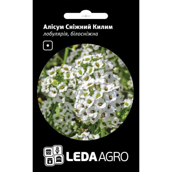 Суцвіття алісума утворюють білі, красиві, пухнасті кущі, при цьому вони мають легко впізнаваний, приємний, запашний аромат. Квітки доволі дрібні, але ростуть вони дуже густо і купчасто. Кущі є розлогими, заввишки 12 см і сильно гілкуються. Рослини можна висаджувати у вазонах, клумбах або змішаних квітниках. Вирощування: посів насіння в ґрунт - на початку травня або в листопаді; посів насіння на розсаду - в березні-квітні, висаджування сіянців у сад - наприкінці травня або на початку червня. Цвітіння: з травня до глибокої осені. Освітлення: яскраве світло або тінь. Ґрунт: легкий, сухуватий, добре удобрений і дренований, ґрунт нейтральної або лужної реакції. Полив: регулярний, помірний, у посуху - рясний. Підживлення: з початку вегетації рослині потрібні азотні добрива, а перед цвітінням - повний мінеральний комплекс. Однорічники підгодовують до 4 разів за сезон. Обрізка: після літнього цвітіння пагони вкорочують на 5-7 см.| Культура | Аліссум (Лобулярія) |