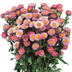 Мацумото - айстра японської фірми "Sakata", стійка до фузаріозу та несприятливих погодніх умов. Сильні, довгі стебла пірамідальної форми з вертикальною формою цвітіння. Висота стебла варіює від 60 до 80 см. Суцвіття діаметром 3-5 см, плоско округлі напівмахрові, з чітко вираженою жовтою серединкою. На одній рослині формується від 10 до 20 квітів. Цвіте з липня по жовтень.