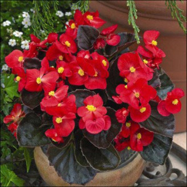 Бегонія Бада Бум F1 скарлет - гібрид багаторічної карликової бегонії. Кущ цієї рослини досягає висоти 25 см і ширини 20 см. Цвітіння починається приблизно через 12 тижнів після посадки. Бегонія є чудовим вибором для озеленення саду та балконів, а також може забезпечити цілорічне цвітіння, якщо її перенести в опалюване приміщення на зиму. Насіння бегонії постачається в дражованій формі, що полегшує процес посіву.