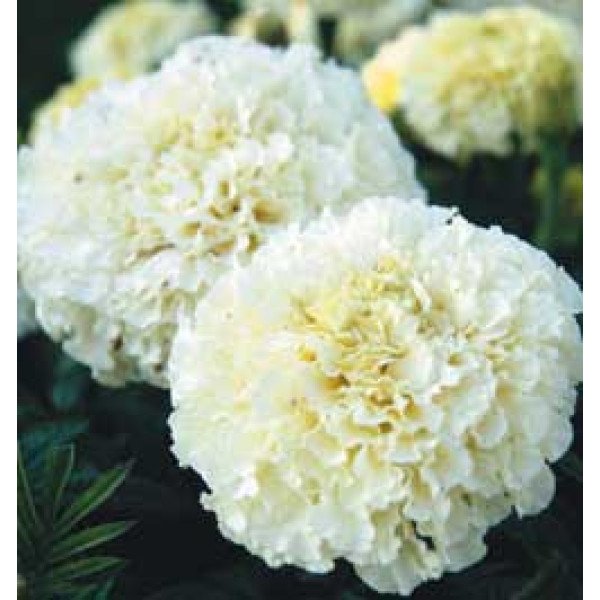 Однорічна трав'яниста рослина з тривалим періодом цвітіння. Рослина формує компактний кущ, заввишки 25 см. Квітки густо махрові, білого кольору. Насіння висівають у відкритий ґрунт наприкінці травня - на початку червня. Рослина невибаглива, швидкоросла, світло- і теплолюбна, посухостійка. Рясно цвіте з червня і до самих заморозків. Чудово виглядає в групових посадках на клумбах, рабатках, квітниках, а також на передньому плані бордюрів. Ідеально поєднується з багатьма садовими квітами. В 1 грамі міститься 300 насінин.| Культура | Чорнобривці |