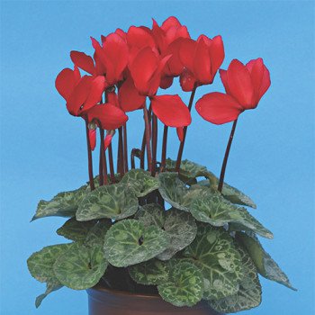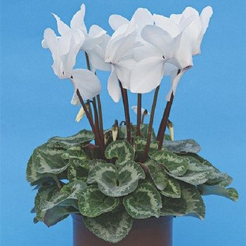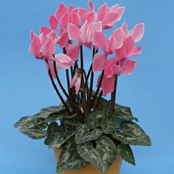 Цикламен вирізняється компактним кущем із серцеподібним або округлим листям, часто прикрашеним сріблястими чи мармуровими візерунками. Квітки цикламена — справжній витвір природи: вони мають п’ять пелюсток, злегка відігнутих назад, і нагадують маленьких метеликів. Колірна палітра включає відтінки рожевого, червоного, білого, фіолетового та їх комбінації. Цвітіння зазвичай припадає на осінь і зиму, що робить цикламен ідеальною рослиною для прикраси дому в холодну пору року.