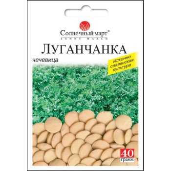 Насіння сочевиці Луганчанка, фасування 40 г Рослини висотою 24-25 см, вилягають мало. У бобі 1-2 насінини, з рослини можна зібрати до 300 насінин. Стійка до шкідників і хвороб. Високий вміст білка, виняткові смакові якості супів, каш і пиріжків. Сприяє виведенню радіонуклеїдів з організму. Вміст біл..