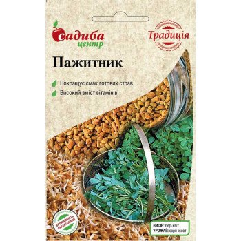 Насіння пажитника ,фасування 0,5 г. Пажитник – однорічна пряна та лікарська рослина родини бобових, відома також під назвами шамбала, фенугрек. Широко використовується у кулінарії, особливо у стравах кавказької кухні, завдяки своєму насиченому аромату та грибному присмаку.