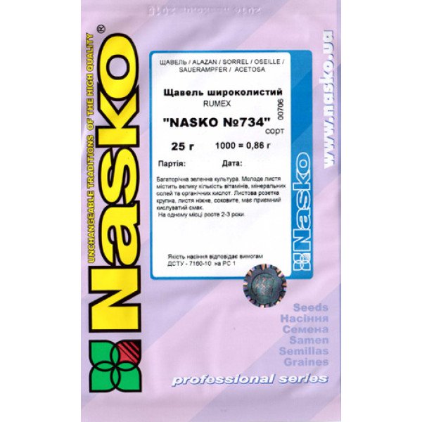 Насіння щавлю широколистий Наско №734, фасування 25 г.